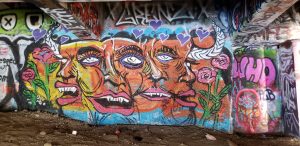 Faces located under the Ford Parkway bridge on the St. Paul side. (Photo by Twin Cities Almanac, March 2021).