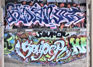 A cacophony of color was discovered under the east side of the Franklin Ave. bridge in Minneapolis. Photo was taken from the west bank of the Mississippi River. (Photo by Twin Cities Almanac, Spring 2021).