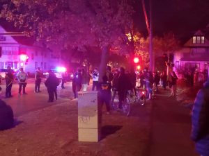 Brooklyn Park Police Station protest following the police killing of Duante Wright, April 11, 2021. (Photo by Twin Cities Almanac, April 2021).