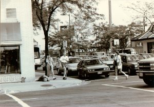 Street people near 14th & Nicollet Ave. in Minneapolis. (Photo by Twin Cities Almanac, circa 1988).