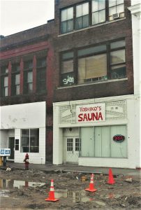 This sauna was located at 117 North Washington Avenue not far from Sex World. Yoshiko’s Sauna operated in the early 1990s until it was declared a public nuisance by the City of Minneapolis and forced to close in early 1993. Some of its history is documented in a Minnesota appeal court record. It was not uncommon for the city to engage in “construction” near these sites as a sneaky way of limiting access by customers. (Photo by Twin Cities Almanac, circa 1990s).